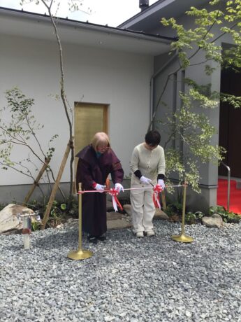 工務店によるセレモニーで、お店の前でささやかなテープカットが行われました。小さなお店ですが、ここ山口市から世界に発信する拠点として、期待が高まります。